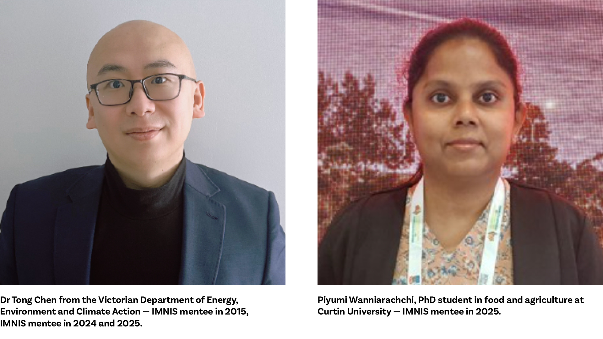 Piyumi said, “As part of the IMNIS 2025 program, I was matched in March 2025 with my mentor, Dr Tong Chen, from the Victorian Department of Energy, Environment and Climate Action. I’ve gained rewarding insights from Tong on the essential skills sought by industry, the importance of building genuine connections and the need to build effective communication skills as some of the key tips for better industry engagement. I'm excited about the rest of the journey to further strengthen my industry know‑how, sharpen my professional and communication skills, and expand my STEM network. I’m thrilled to highlight our mentorship story and showcase how IMNIS empowers researchers to confidently bridge academia and innovation."